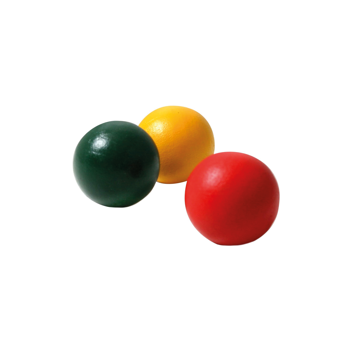 Set de 3 cochonnets bois : 1 jaune, 1 rouge et 1 vert.