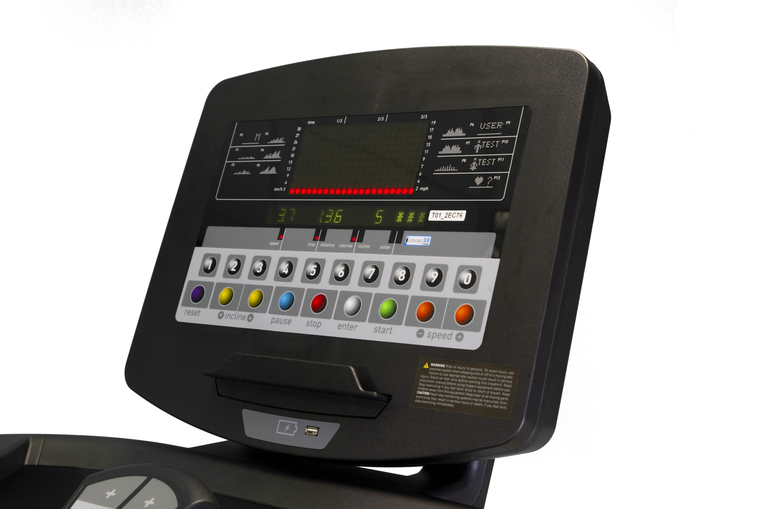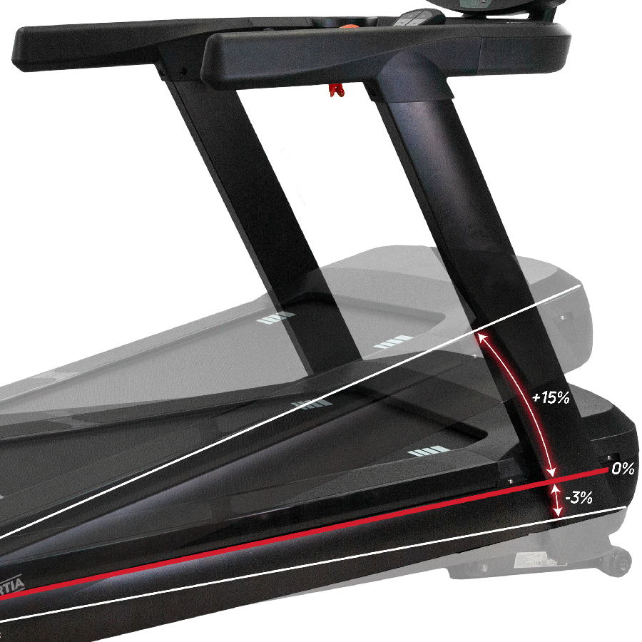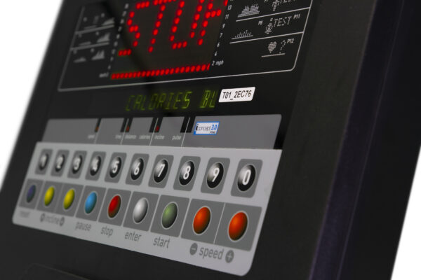 Caractéristiques de confort : Système d’amortissement avec 8 élastomères qui aide à prévenir les lésions musculaires et des articulations. Plateforme d’accès facile, pour faciliter l’accès aux personnes à mobilité réduite. Carter en plastique ABS peint avec la technologie similaire utilisée dans le secteur automobile. Double support sur la main-courante: permet d’avoir à portée de main la bouteille ou autres objets personnels. Easy ToolBar d’accès simple et rapide intégré sur la main courante frontale, qui inclue :- Capteurs de prise de pouls par contact- Réglage de la vitesse et de l’inclinaison- Quick Start- Bouton d’arrêt d’urgence