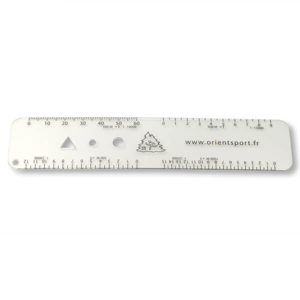 Traceur de marque française Orientsport. Matière plastique semi rigide. Dim : 15,5 x 3,5 cm. Echelles :1/10000 1/15000 1/20000 1/25000. Symbole de départ et d’arrivée. Petit trou pour attache. Livraison sous 5 jours.